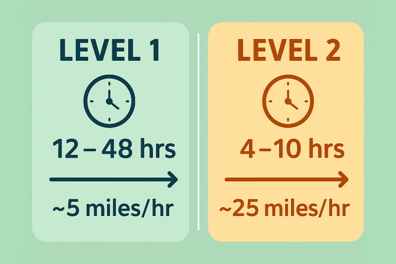 Seviye 1 Şarj Cihazları: 120V ev elektriği kullanır ve yavaş şarj olur. Tam şarj 12-48 saat sürebilir ve saatte yaklaşık 6-8 km menzil sağlar. Ev kullanımı veya gece şarjı için idealdir.
